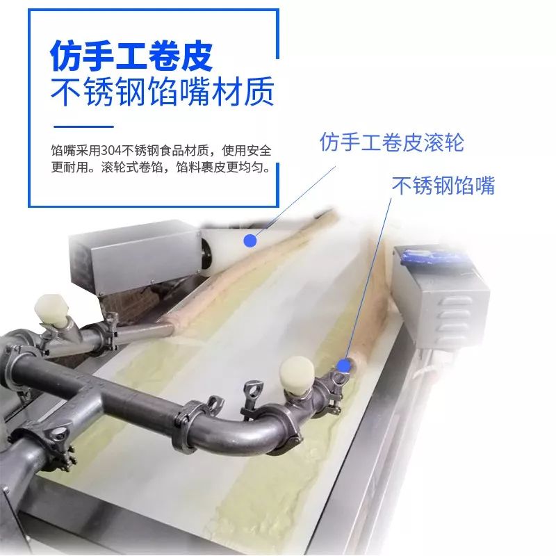 / 腐皮卷機是一款完全取代手工包各種腐皮類的機器,完全解決傳統(tǒng)手工包個種肉卷、卷章、魚卷、蝦卷、福建五香卷、潮汕肉條、腐皮蝦卷、墨魚卷、芋泥卷、地瓜卷等各種卷類食品。做出的各種卷類食品造型好看、長短均勻,葉片泵的供料機不破壞物料原有形狀,獨有的圓形收口切斷設(shè)計使其接近手工制作。全自動包漿、卷條、切斷成型,大大的提升了生產(chǎn)效率,滿足了批量化生產(chǎn)的速度要求。/